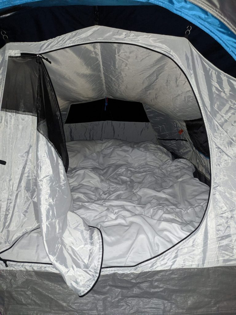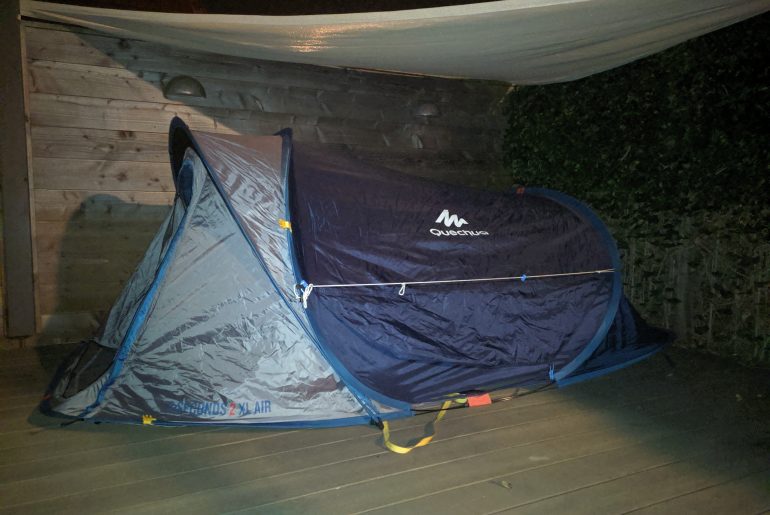 Avontuurlijk was het ook, want je moet toch even in het donker uit je tent kruipen om te gaan plassen. En wat die helikopter om half 5 ’s ochtends boven onze wijk deed, is me ook nog steeds een raadsel. Maar al met al hebben we heerlijk geslapen!