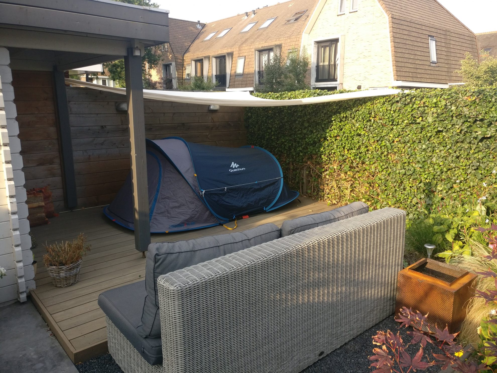 Wat doe je als echte avonturier wanneer het binnen te heet is om te slapen? Juist ja, dan slaap je buiten in je eigen tuin! Tenminste dat was onze oplossing om toch nog een oog dicht te doen tijdens de beruchte plaknachten afgelopen week.